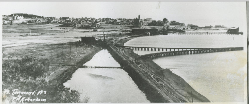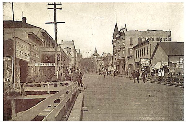 This old photo looking north on downtown Taylor Street from Union Wharf is obviously before my time. It has lost a bit of detail through copying along the way, but major landmarks remain …